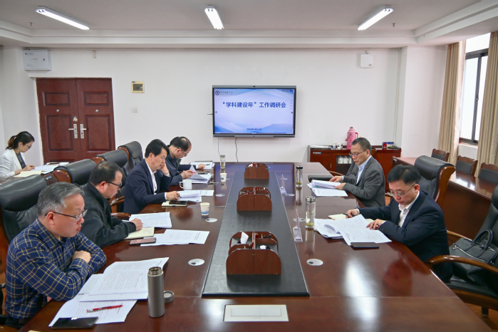 学科建设办公室汇报了“学科建设三年行动计划(2026-2028年)”撰写思路及“71020”学科专业群申报情况,教务处、科学研究处、研究生处等职能部门主要负责人参加会议并交流发言。
